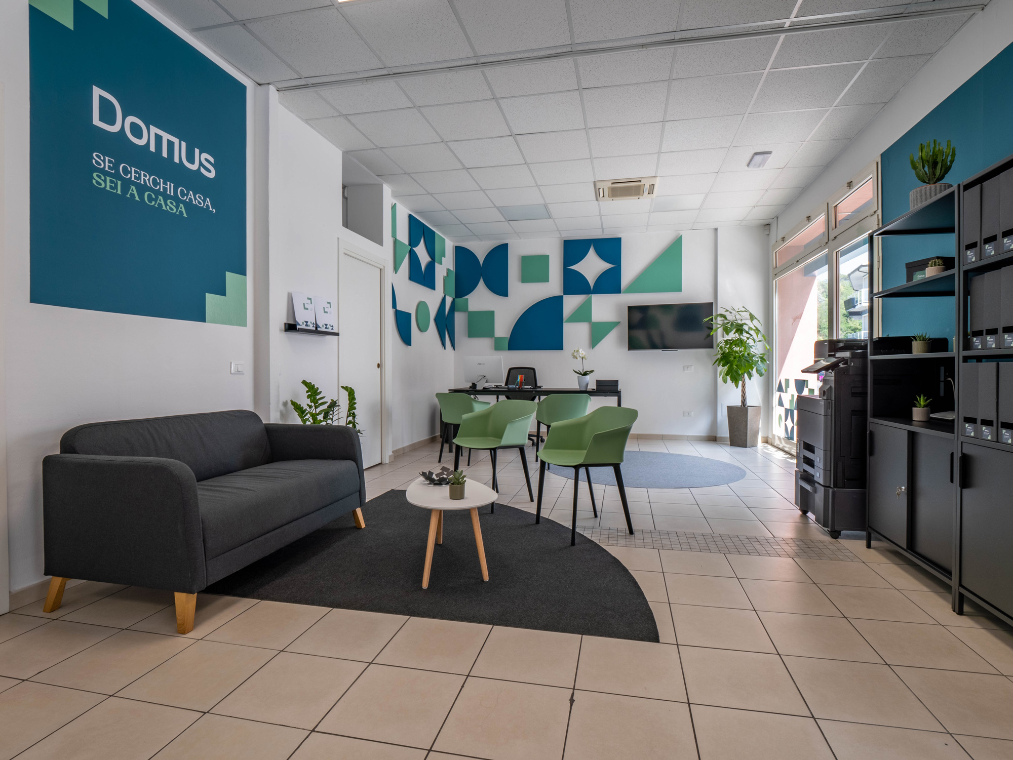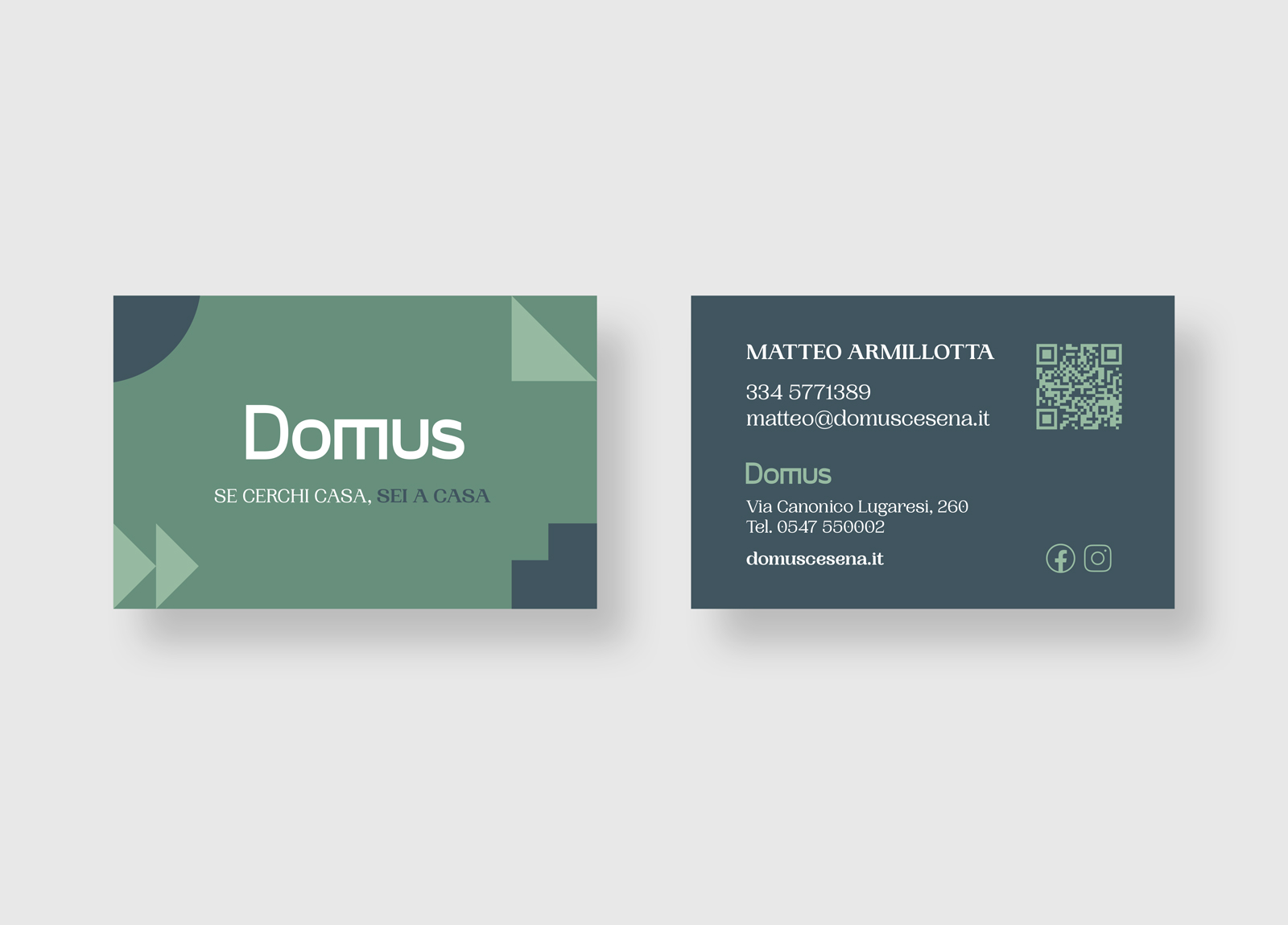 Il logo e il sistema di identità coordinata online e offline per l’agenzia immobiliare Domus si basa su elementi grafici utilizzabili singolarmente o come pattern. La simmetria delle forme geometriche suggerisce stabilità, mentre la loro disposizione può trasmettere dinamismo.