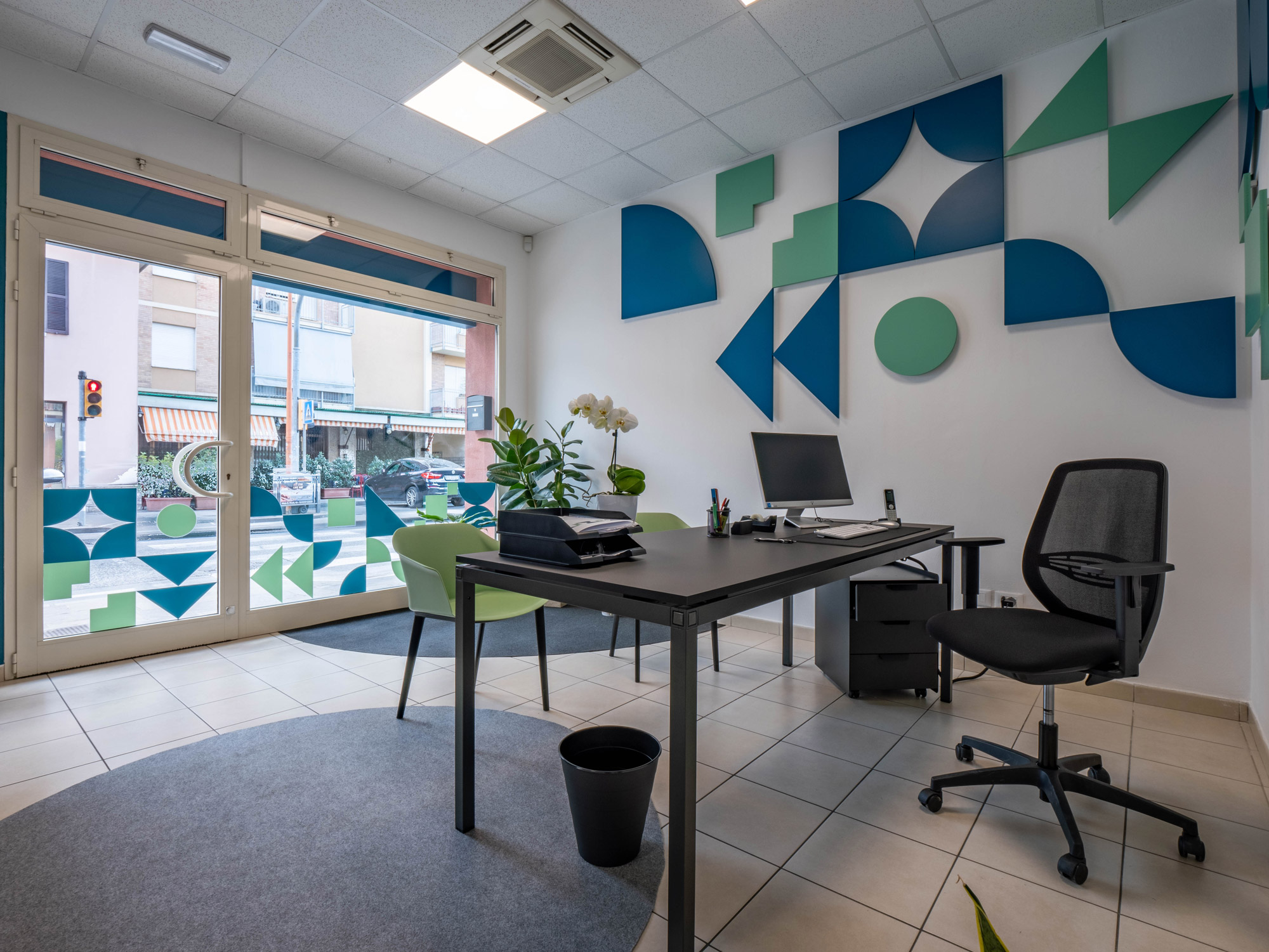 Un pattern basato su forme geometriche unite ad una cartella colore definita può essere un elemento distintivo dell'immagine coordinata. La ripetizione delle forme crea un senso di continuità e coerenza attraverso vari materiali dell'immagine coordinata. Questo pattern diventa una firma visiva, associando istantaneamente ogni elemento al marchio.